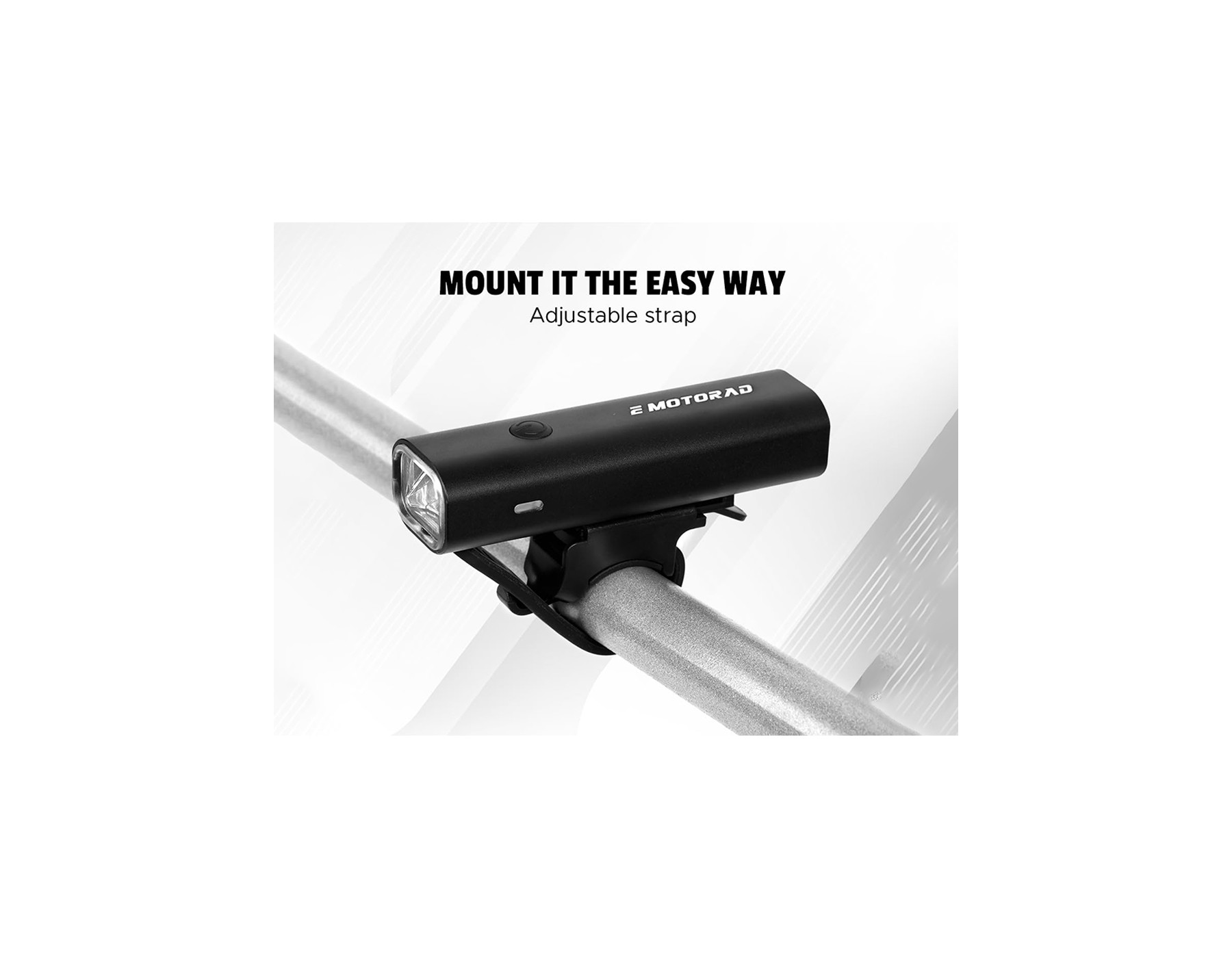 Installation is tool‑free with adjustable mounting straps for easy attachment to handlebars.