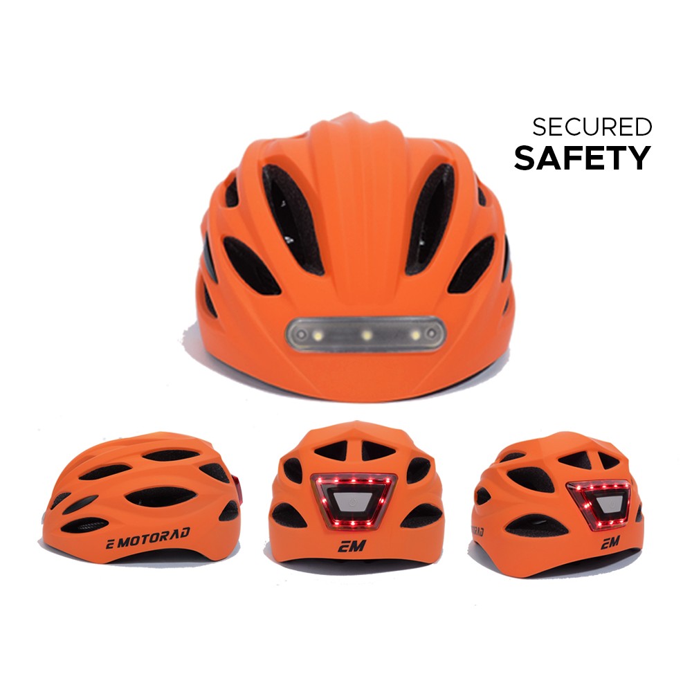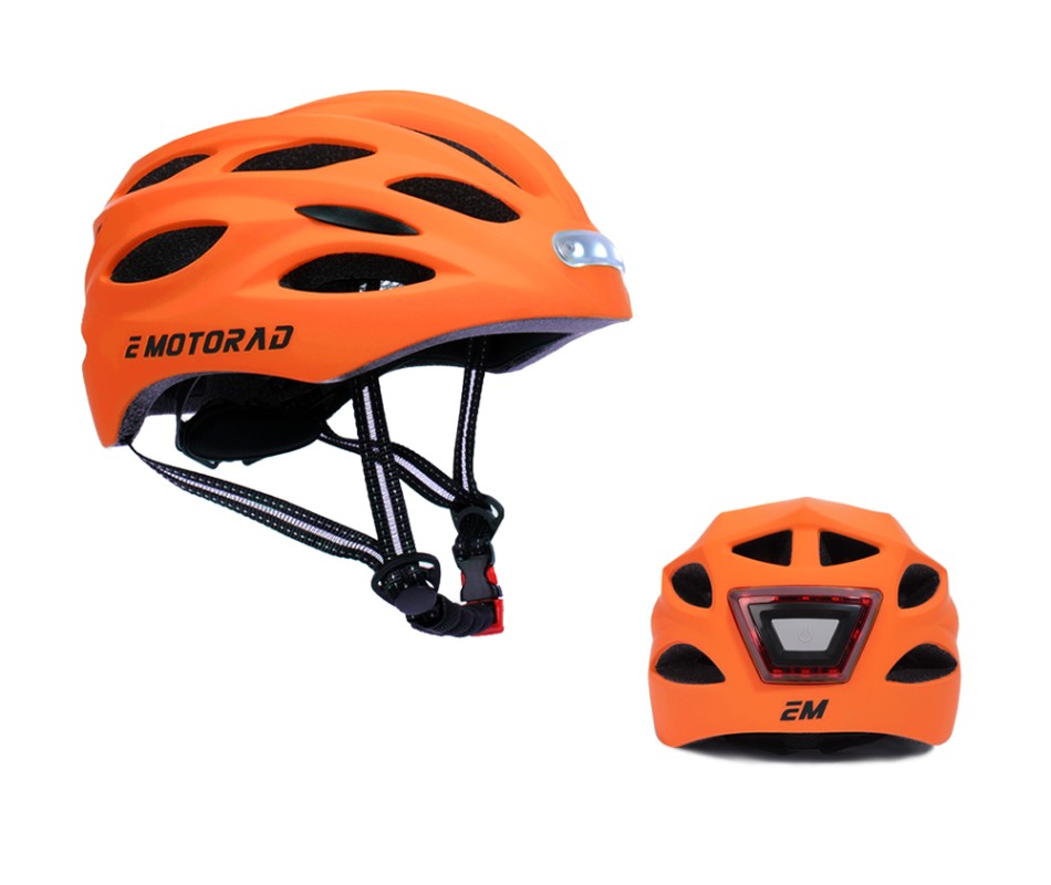 EMotorad's Beacon helmet offers top-tier safety with its EPS foam, PC hard shell, and 20 vents for ultimate protection. Designed for both men and women, it features powerful LED headlights and rear lights with adjustable straps. No matter the road, stay safe and secure with Beacon!