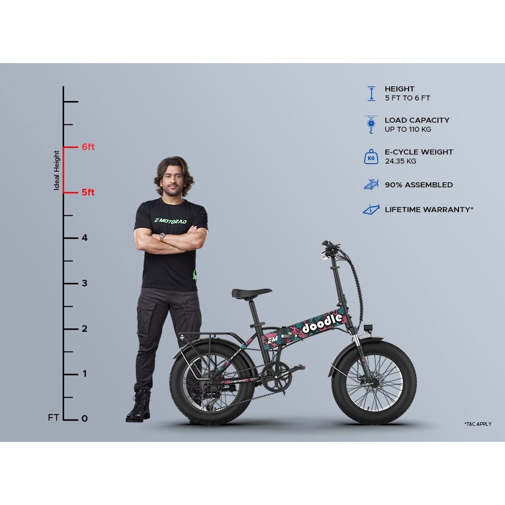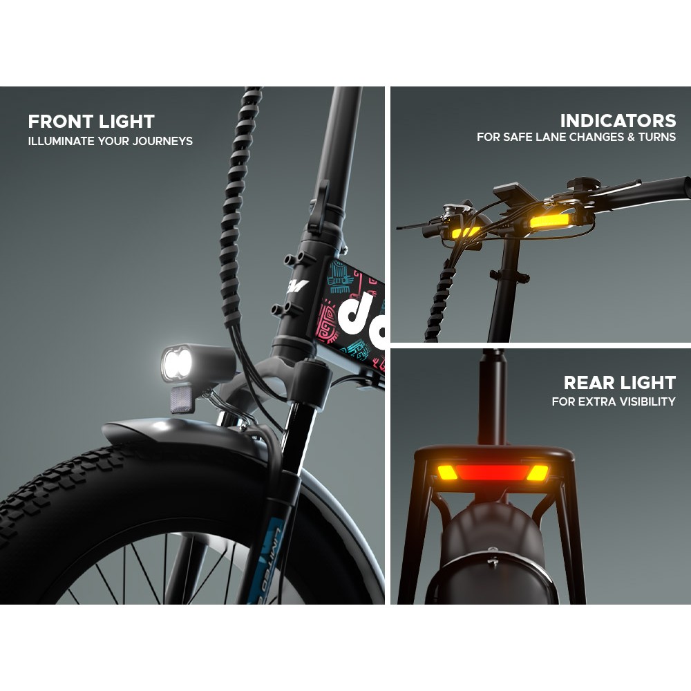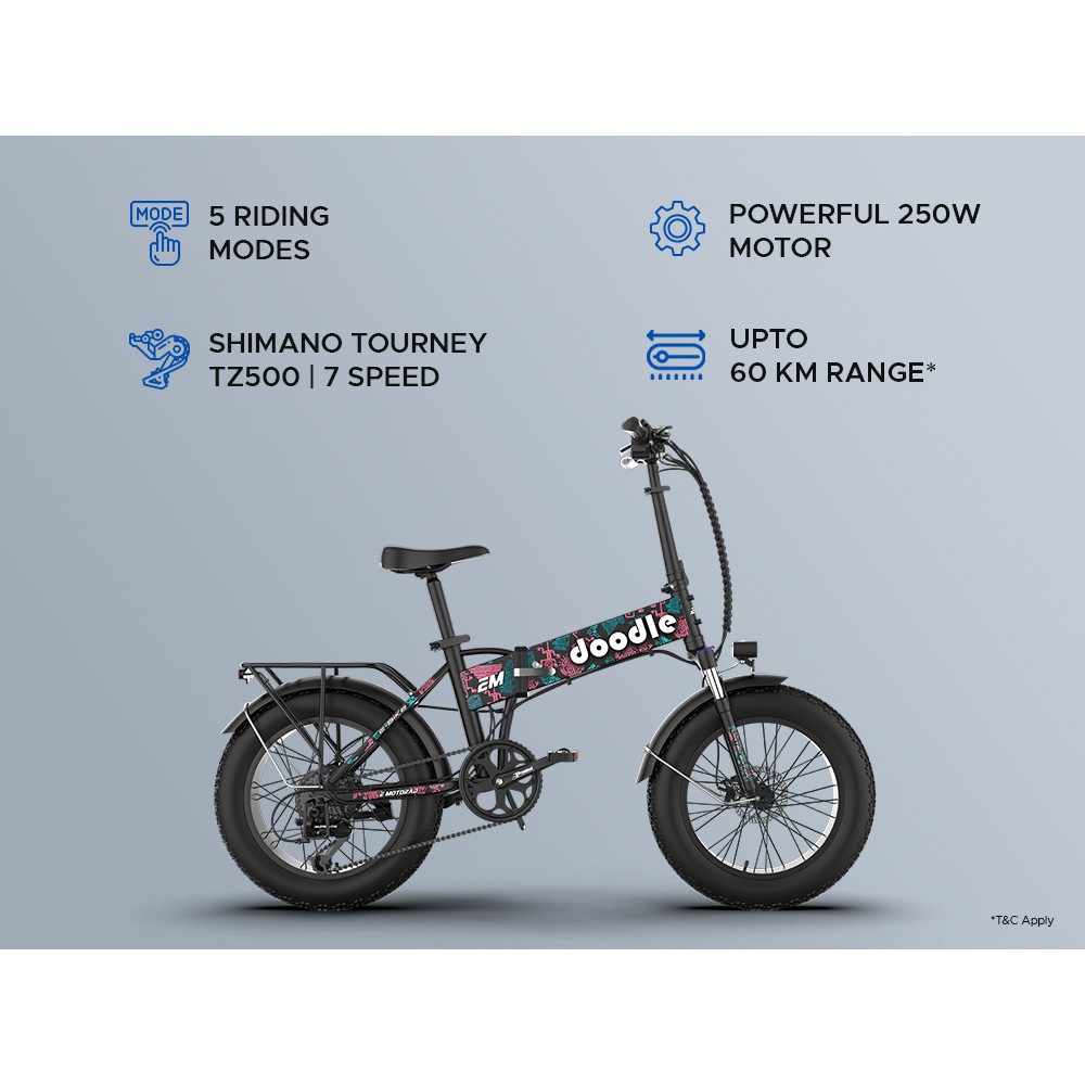 The Doodle Pro isn’t just an e-bike—it’s your gateway to endless adventure. With its foldable design, powerful 36V motor, and a range of up to 60 km on PAS, it’s built to take you further, faster. Equipped with 7-speed Shimano gears, front suspension, and bright front and rear lights, it's compact, easy-to-carry frame makes travelling a breeze. Unfold freedom and ride the future.